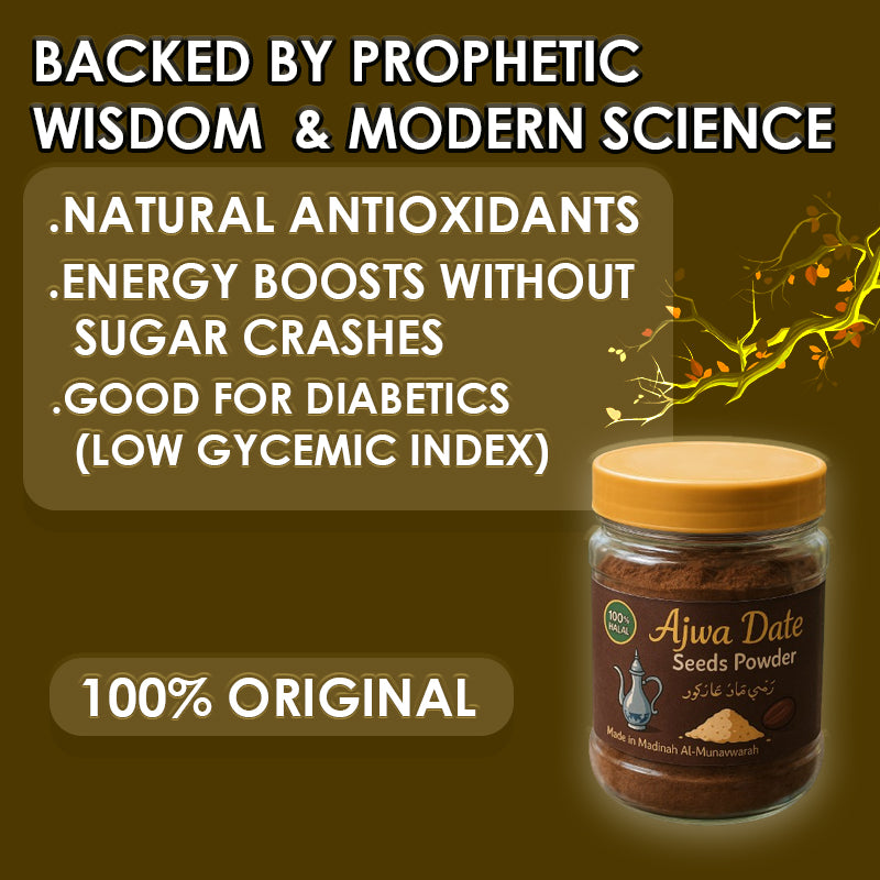 A powerful blend backed by prophetic wisdom and modern science, this formula delivers clean, sustained energy through natural antioxidants—without the sugar crash. Its low glycemic index makes it ideal for diabetics and anyone seeking a smarter, healthier energy boost.